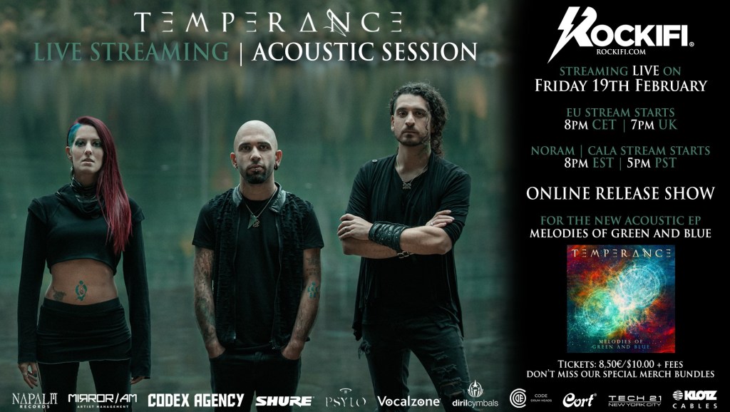 To celebrate the release of their new, acoustic-driven album, Melodies of Green and Blue, traditionally symphonic metal rock band Temperance performed their music in a highly non-traditional way on Friday night: Unplugged, live and streamed from Groove Factory in Udine, Italy.