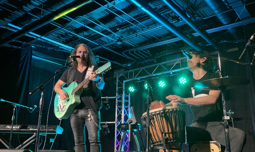 Throughout the evening, Kip strummed his 12-string guitar with exuberance, while Robby thundered along mightily across a pair of bongo drums and floor stomps—a surprisingly invigorating translation of 80s rock staples.