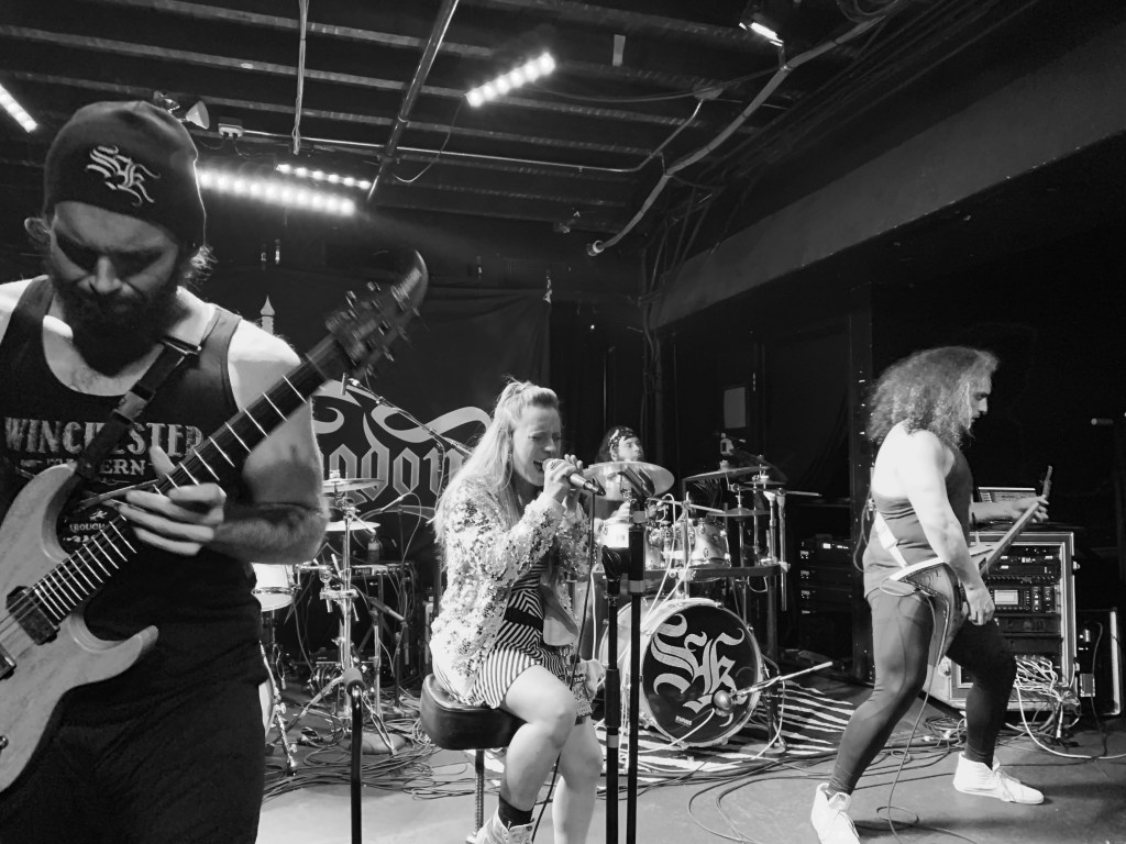 With an all-killer and no-filler 7-song set, vocalist Sabrina Valentine (whilst seated from a recent ankle injury) muscled her way through daft range of power and harmony (reminiscent of the lead singers in Evanecense, Heart and Blondie), and was the perfect adornment to a thunderous speed rhythm section of Kevin Byrd and Camden Cruz (guitars) and Keith Byrd (drums).